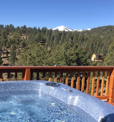 Alpine Escape is a privately owned rental cabin perfectly situated on the side of a mountain, in a seemingly remote area of Northern Ruidoso. Beautifully decorated and nicely furnished in a rustic theme to give you that mountain charm. With an unmatched view, this 3 bedroom, 2 bathroom property can sleep up to 8 adults. Plus enjoy over 600 sq. ft. of deck and covered area added November 2017.